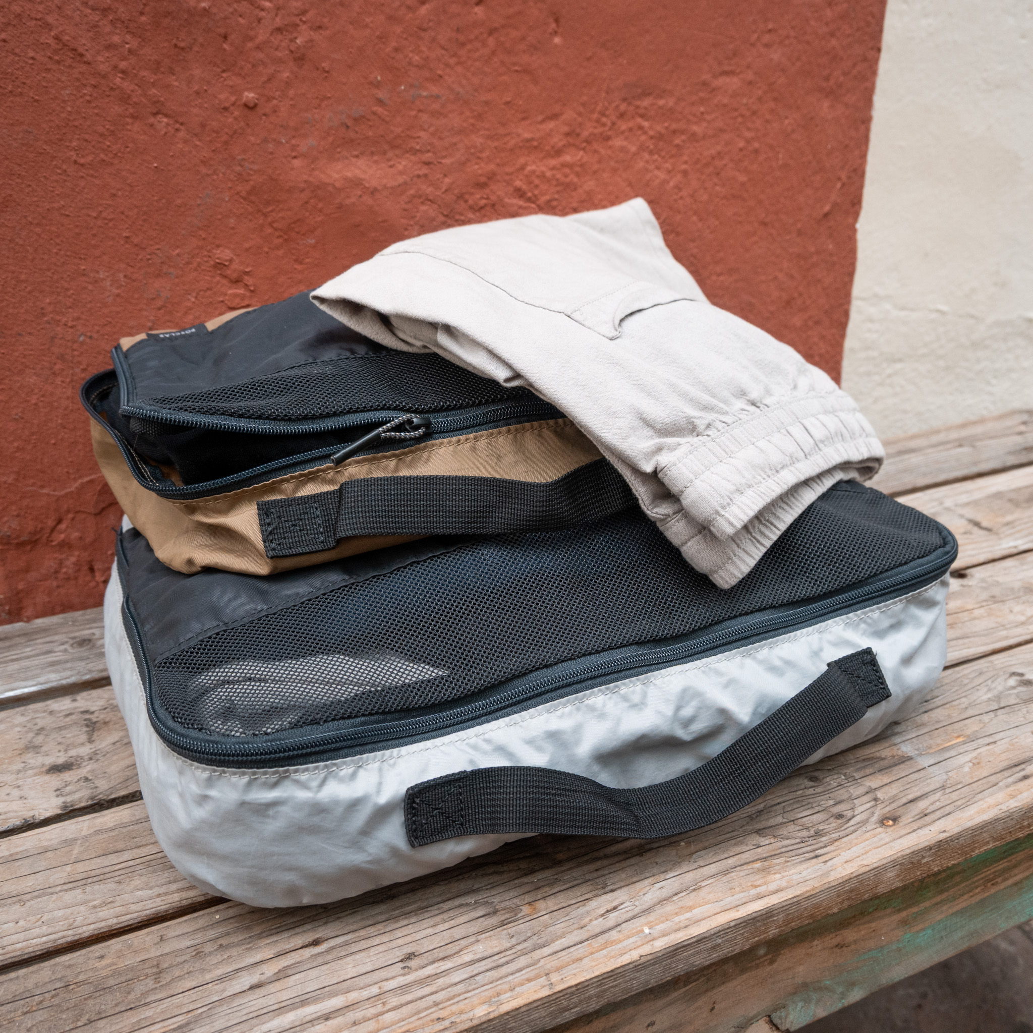 Invest in good-quality bags — you’ll be opening and closing them often, so you don’t want a zipper that breaks. Also, breathable material also helps prevent clothes from smelling. A decent set usually costs about 15–30 euros.